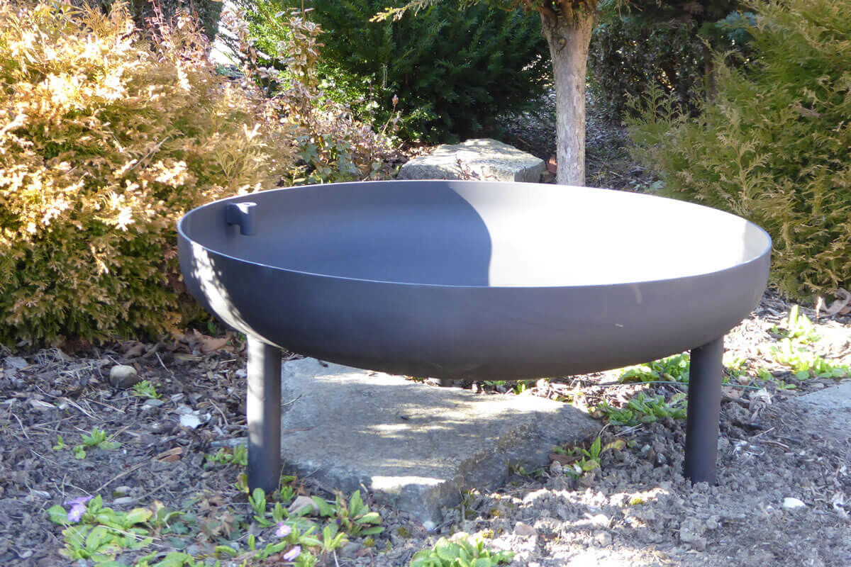 Dekorative Feuerschale oder vielseitig ausbaubarer Grill. Stabiler Stand auf unebenem Untergrund dank drei fest verschweissten Beinen.