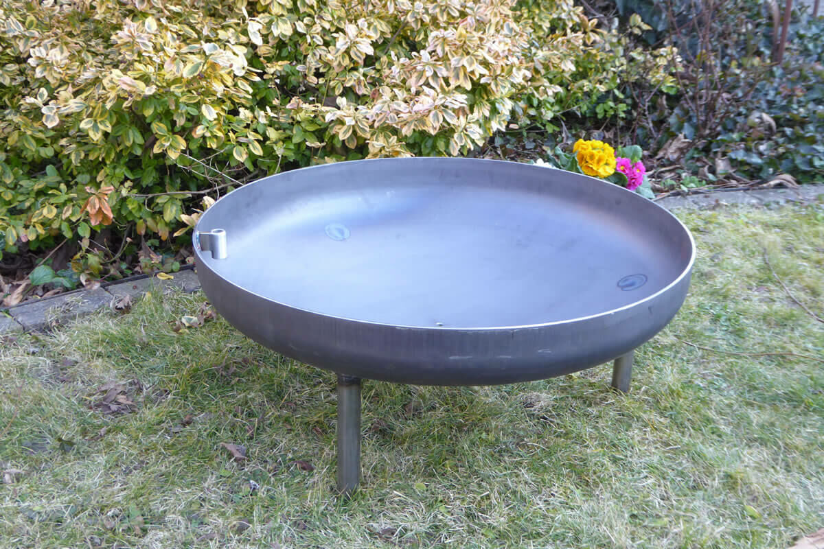 Dekorative Feuerschale oder vielseitig ausbaubarer Grill. Stabiler Stand auf unebenem Untergrund dank drei fest verschweissten Beinen.