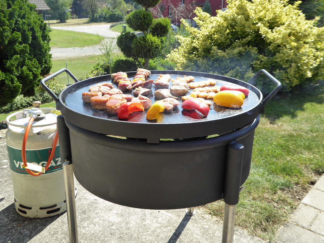 Unsere Grillpfanne wurde speziell für grössere Gruppen konzipiert und bietet ausreichend Platz, um köstliche Gerichte für bis zu 25 Personen zuzubereiten. Die Grillpfanne eignet sich perfekt für eine Vielzahl von Speisen, von Risotto über Wok Gerichte, frisches Gemüse, Rösti usw. Ihrer Kreativität sind keine Grenzen gesetzt!